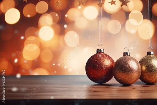 Christmas Baubles And Blurred Shiny Lights, some blurry space for text