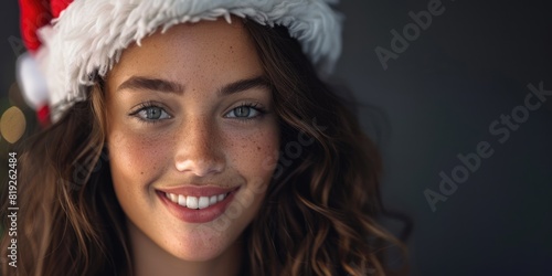 Christmas Beauty. Attractive Woman in Santa Hat Smiling Happily