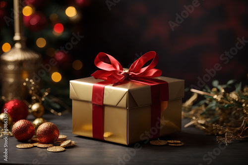 Christmas Birthday Valentine's Day Gift Box in light glowing background