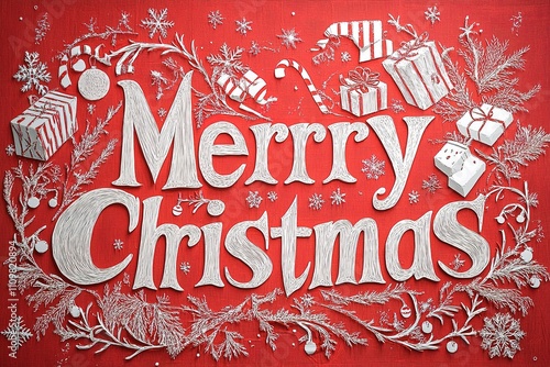 Christmas Blogger Banner: Red Background, Paper-Cut 'Merry Christmas,' and Holiday Decorations