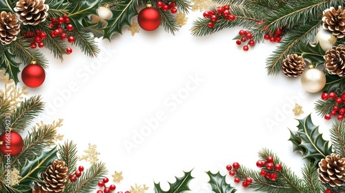 christmas, border, holly, pine, cone, cone, red, berry, berry, ornament, ornament, ball, ball, gold, glistering, snowflake, snowflake, white, background, festive, decoration, decor, winter, holiday, celebration, season, joy, cheer, merry, bright, sparkle, traditional, classic, elegant, simple, natural, minimalist