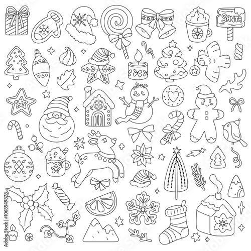 page, winter, vector, holiday, christmas, book, colouring, merry, outline, new year, snow, celebration, cute, contour, children, snowman, children, line, party, ornament, printable, santa, game, black, traditional, tree, white, festive, cervid, funny, ball, illustration, garland, character, cartoon, decoration, snowflake, design, drawing, sheet, decorated, reindeer, gift, sweet, pastry, food