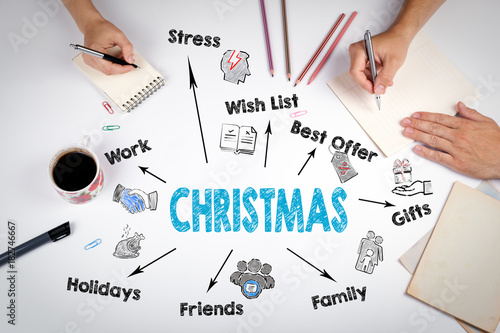 Christmas Concept. Chart with keywords and icons. The meeting at the white office table.