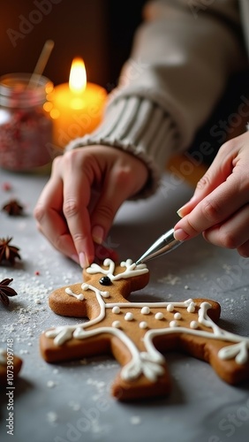 christmas, holiday, cookie, gingerbread, festive, winter, baking, candle, decoration, reindeer, icing, cinnamon, celebration, frosting, sugar, cosy, dessert, warmth, spice, cheerful, sweet, pastry, kitchen, homemade, hand, culinary, flour, design, treat, home, traditional, creativity, family, artistic, joyful, craftsmanship, detail, festive season, bricolage, style, holiday spirit, winterly, perfection, garnished, ai