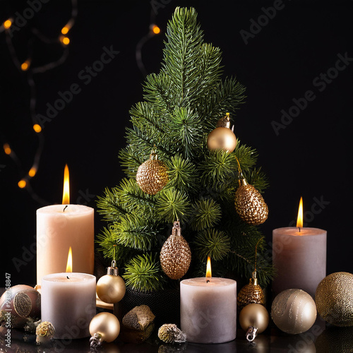 christmas, candle, decoration, holiday, celebration, christmas, tree, flames, light, fire, candlelight, ball, winter, burning, season, ornament, candle, gift, advent, tree branch, gold, red, december, shiny, fir, decor, pine, wax, chaplet, light, new