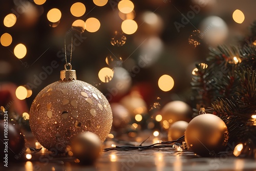 Christmas Decorations, Festive Ornaments, Golden Baubles