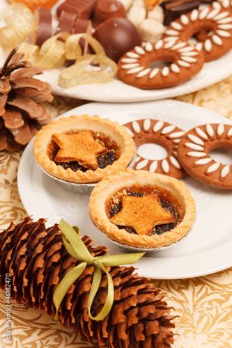 christmas, culture, dessert, fairy, food, fruit, image, mince, photograph, pie, santa, sweet, traditional, jam, spice, symbol, cookie, gold, ribbon, chocolate, cake, cone