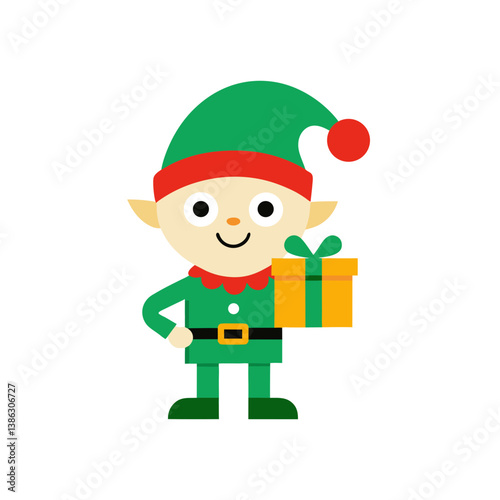 elf, christmas, cartoon, leprechaun, illustration, vector, holiday, green, patrick, gift, celebration, hat, boy, irish, fun, santa, clover, children, character, st, smiling, day, saint, christmas, children