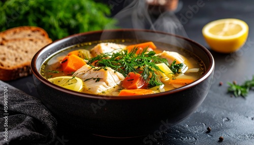 Christmas Eve Fish Soup with Dill and Lemon. Traditional Eastern European Food