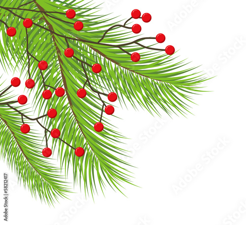 christmas, christmas, vector, ornament, pine, fir, red, tree, twig, green, white, leaf, design, tree branch, nature, natural, berry, isolated, beautiful, decoration, decorative, background, celebration, illustration