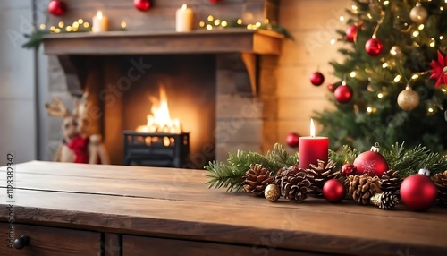 christmas, fireplace, candle, table, wooden, rustic, pine, cone, ornament, red, gold, evergreen, holiday, festive, cosy, warm, winter, decoration, comfort, celebration, background, tree, light, glowing, sparkling, home, decor, design, ambience, still life, photo, product, promotion, advertisement, card, greeting, seasonal, family, joy, happy