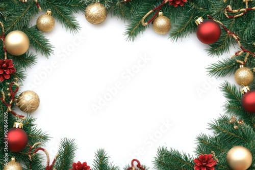 christmas, frame, tree, decoration, holiday, tree branch, border, pine, fir, chaplet, winter, christmas, celebration, ball, green, new, holly, card, vector, year, design, garland, illustration, season, merry