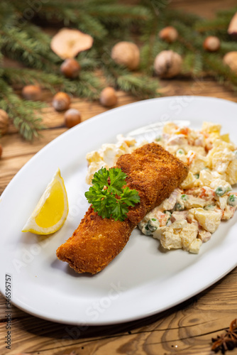 carp, celebration, christmas, closeup, cooked, cookery, czech, decoration, delicious, dish, festive, filet, fillet, fish, food, fried, healthy, holiday, homemade, ingredient, lemon, meal, meat, nut, nut, plate, portion, potato, potato salad, prepared, salad, seafood, still life, symbol, table, tasty, tradition, traditional, twig, twig, vegetarian, wooden, christmas