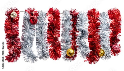 christmas, garland, red, silver, festive, decoration, ornament, ball, metallic, curled, twisted, strand, holiday, wired, hanging, twinkling, fringe, string, vibrant, colours, design, texture, decorative, celebration, pattern, ornamental, shiny, whimsical, festoon, stringing, christmassy, ornamented, frosted, looped, decoration, celebratory, twirling
