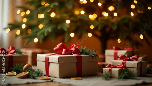 christmas, gift, stacked, beneath, gift, tree, decoration, holiday, box, present, christmas, celebration, ribbon, ornament, year, bow, winter, new, green, season, ball, isolated, pine, fir, tree branch, red, christmas tree, gold