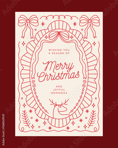 christmas, holiday, greeting card, line art, elegant, minimalist, festive, merry christmas, joyful, celebration, ribbon, reindeer, winter, typography, holiday season, classic, stylish, red, decoration, peace, joy, family, seasonal, custom, traditional, modern, wishes, foliage, delicate, chic, christmas card, warm