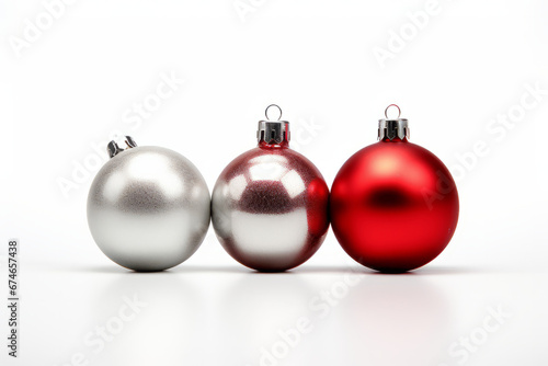 christmas, holiday, red, silver, ball, isolated, white background, decoration, ornament, festive, presentation