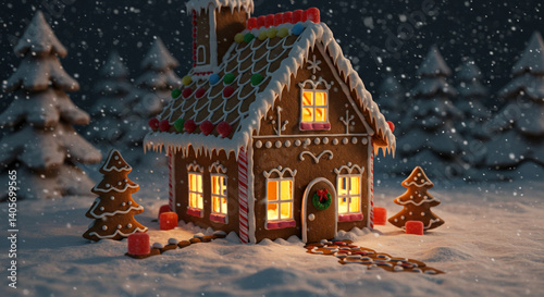 christmas, house, winter, snow, christmas, tree, holiday, home, landscape, night, card, season, cold, illustration, santa, village, celebration, vector, scene, new, building, decoration, snowflake, sky, gingerbread
