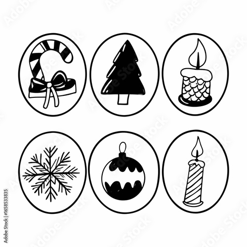 christmas, set, holiday, decoration, winter, new, year, ornament, christmas, design, tree, snowflake, candle, graphic, symbol, element, season, celebration, drawing, collection, signs, clip art, art, vignetting, vintage, retro, hand, drawn, style, ribbon, flames, burning, bauble, snow, december, festive, outline, artistic, artwork, shape, simple, minimal, linear