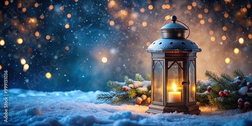 Christmas lantern glowing in the night with snowfall background, Christmas, lantern, night, snowfall, winter, holiday