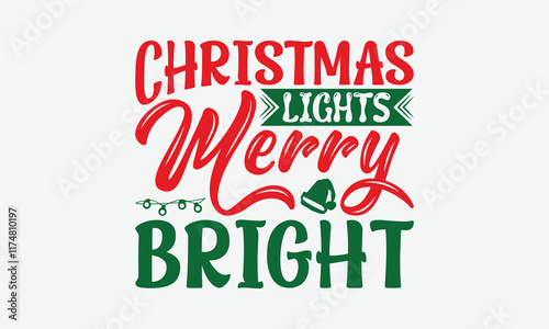 Christmas Lights Merry Bright - Christmas Day T-Shirt Design, Illustration For Prints On T-Shirts And Bags, Posters, For Prints On Bags, Posters, Cards.