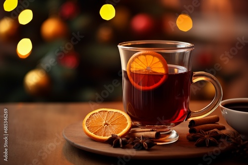 Christmas mulled wine. Red Hot wine or gluhwein with spices, winter drink,