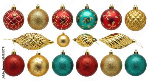 Christmas Ornament Collection Gold Red and Green Festive Decorations.