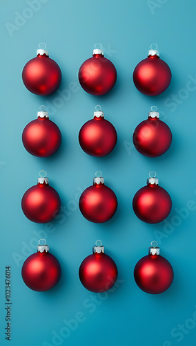 christmas ornaments arranged neat repetition colored backdrop