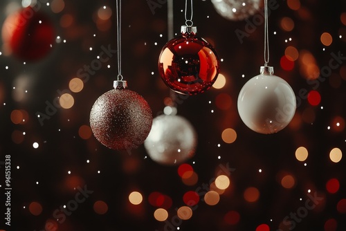 Christmas ornaments hanging against a dark background