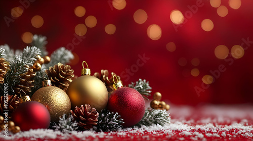 christmas bauble, winter scene, holiday greeting, christmas spirit, pine cone, red background, holiday spirit, holiday season, christmas ornament, winter landscape, festive season, christmas bauble, christmas decoration, christmas card