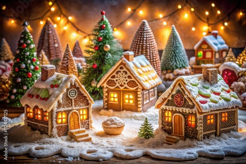 Christmas Photo Studio Backdrop: Gingerbread Houses & Snowy Scene - Rule of Thirds Composition