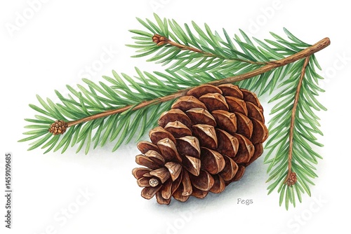 christmas pine cone and fir tree twig decoration isolated on white background