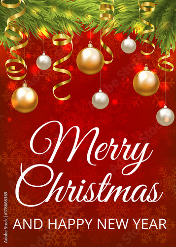 christmas, gold, gold, tree, fir, tree branch, vector, serpentine, illustration, background, card, design, holiday, glistering, celebration, invitation, decoration, template, banner, party, poster, greeting, christmas, ribbon, happy, red, border, merry, sparkle, streamer, paper, post, square, bauble, glasses