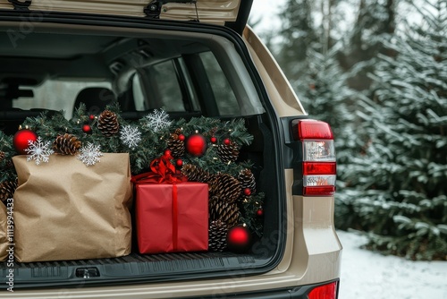 Christmas Road Trip SUV Packed with Holiday Gifts Decorations
