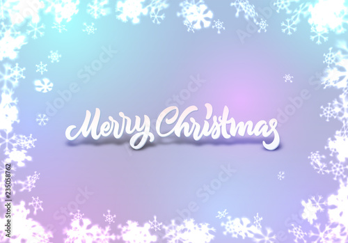 Christmas snowflakes background with falling snow and lettering or calligraphic greeting text