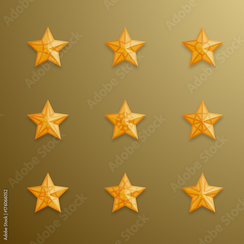 Christmas star symbol gold color with pattern and shadow set illustration isolated on gold gradient background