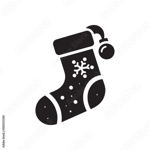 Christmas Stocking Icon. Vector Silhouette on White Background.