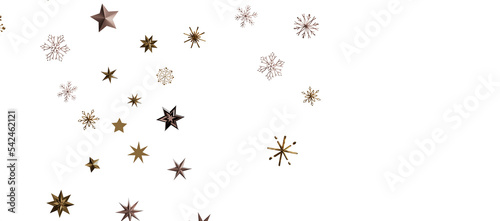Christmas theme, golden openwork shiny snowflakes, star