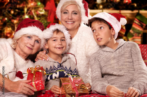 leisure, children, boy, concept, celebration, christmas, children, old, christmas, present, grandchild, living, gift, smiling, love, family, box, elderly, holiday, human relationships, lifestyle, grandson, young, girl, room, woman, winter, person, december, senior, grandparent, childhood, home, mature, grandmother, cheerful, indoor, generation, giving, happy, mother, happiness, hat, santa, enjoying, looking, cute