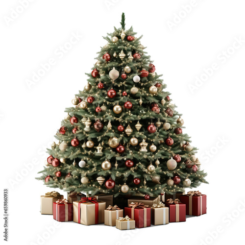 christmas tree, decoration, gift, holiday, christmas, tree, christmas, celebration, present, fir, box, isolated, winter, year, new, star, ball, santa, season, pine, green, gift, ornament, gold, red