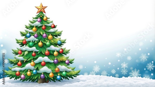 Christmas tree background with ornaments snowy winter background for festive celebrations.