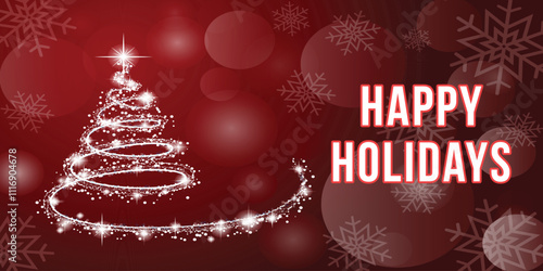 glow, christmas tree, card, christmas, tree, holiday, christmas, winter, star, merry, snow, decoration, celebration, illustration, new, design, snowflake, red, vector, year, greeting, light, new year, season, gold, fir, red background, happy holiday, happy new year