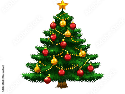 christmas, tree, decoration, holiday, christmas tree, christmas, celebration, gift, ball, fir, star, pine, year, new, green, season, winter, illustration, present, ornament, festive, december, gold, vector, spruce