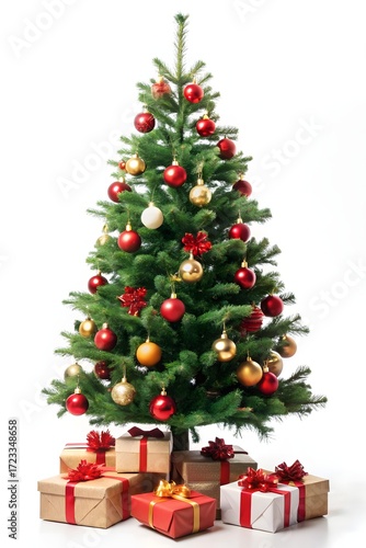 christmas, tree, present, christmas tree, white background, gift, lighting equipment, christmas lights, christmas ornament, christmas decoration, celebration, background, white, wall, eve, winter, space, design, holiday, seasonal, decoration, red, pine, green, fir, festive, ball, season, year, bauble, ribbon, traditional, new, interior, nobody, star, living, floor, enclosed, bow, santa, different, concept