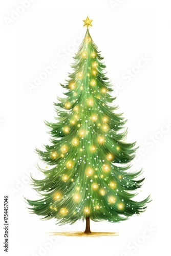 Christmas tree decorated with lights christmas plant white background.