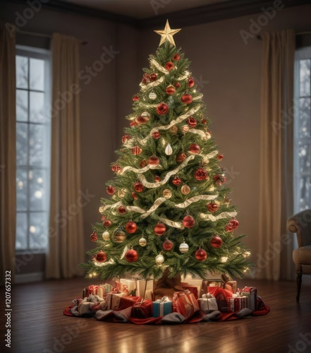 Christmas tree decorated with ornaments and lights, christmas trees, tree decorations, festive lights