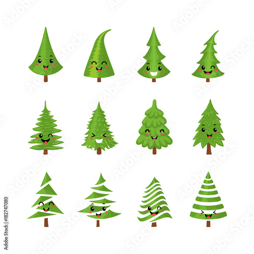 christmas, tree, vector, colourful, illustration, set, icon, isolated, white, background, cute, emotional, face, flat, green, character, poster, design, cartoon, happy, smile, party, fashion, jan, card, merry, collection, animation, comic, funny, children, year, winter, unusual, new, holiday, greeting, drawing, decorated, craft, stylised, badge, label, business, logotype, december, fun, children