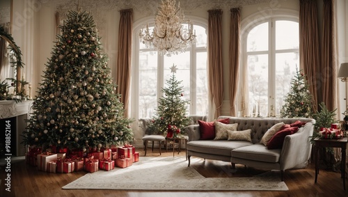 interior, room, indoor, living, festive, fireplace, apartment, merry, present, year, cosy, furniture, living room, december, sofa, window, chair, floor, luxury, seasonal, comfortable, magic, celebrate, ornament, toy, hotel, new year, warm, gold, comfort, couch, star, ball, fire, glowing, tradition, classic, time, contemporary, lamp, three-dimensional, night, eve, illuminated, shiny, copy space, pine, wallpaper, elegant