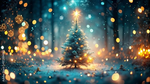 christmas, tree, decorated, light, snow, forest, twilight, snowflake, enchanting, winter, wonderland, scene, snowy, night, holiday, season, celebration, glowing, mysterious, nature, cold, frosty, magical, sparkle, aethereal, tree, wood, wintery, chilly, glacé, outdoors, serene, peaceful, majestic, gloaming, star, bright, pine, soft, snowfall, evening, ambient, decoration, christmas, decoration, illustration, christmas tree, snowflake, green