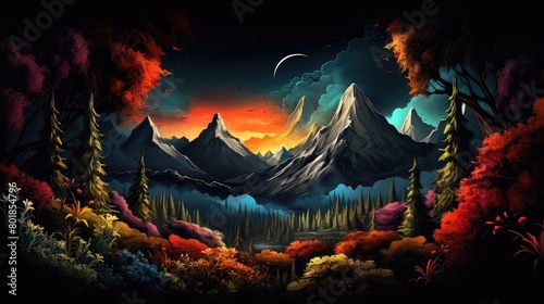 mountain, landscape, sky, mountain, forest, nature, alps, snow, tree, cloud, cloud, green, travel, view, vale, summer, alpine, tree, peak, fog, pine, panorama, sunset, morning, wood